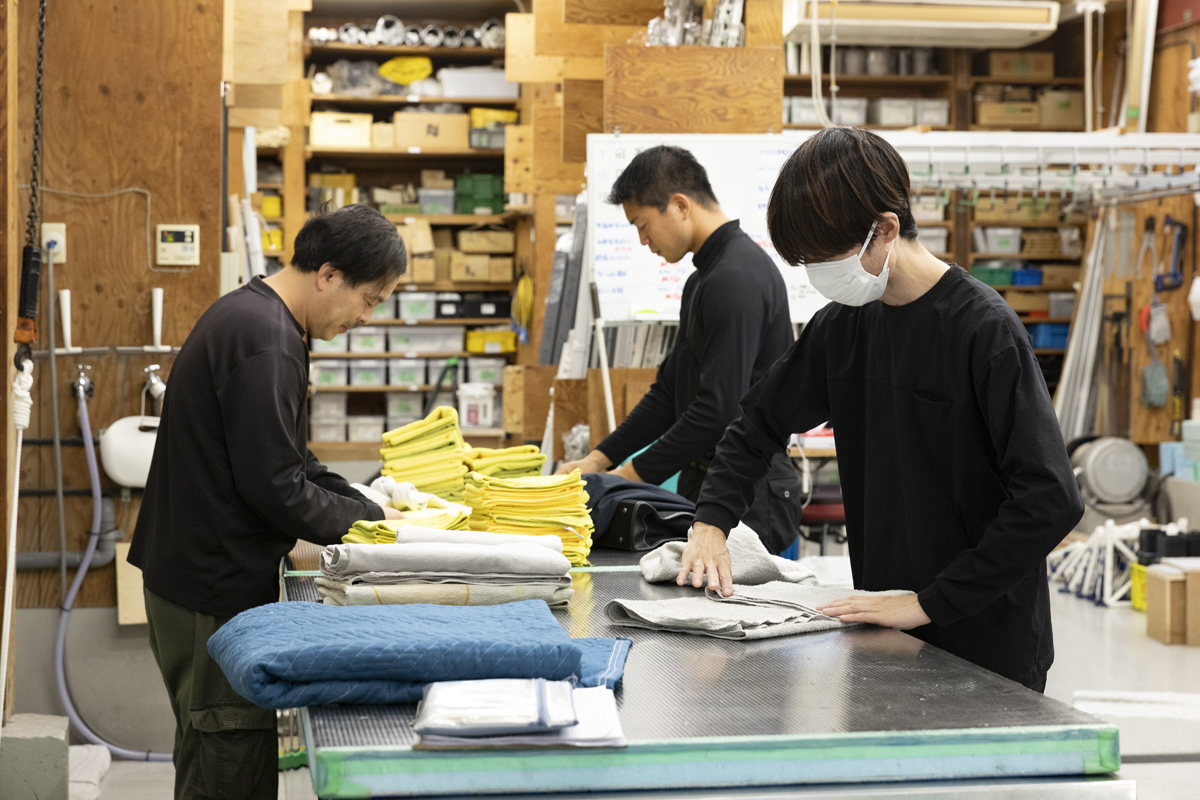 その場でできない修理のものやクリーニングするブラインドを工場に持ち帰ります。