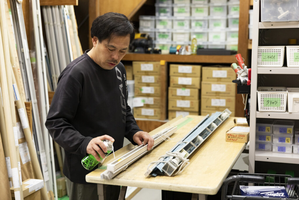 外回りの社員が持って帰ってきたブラインドのクリーニングや修理を行います。